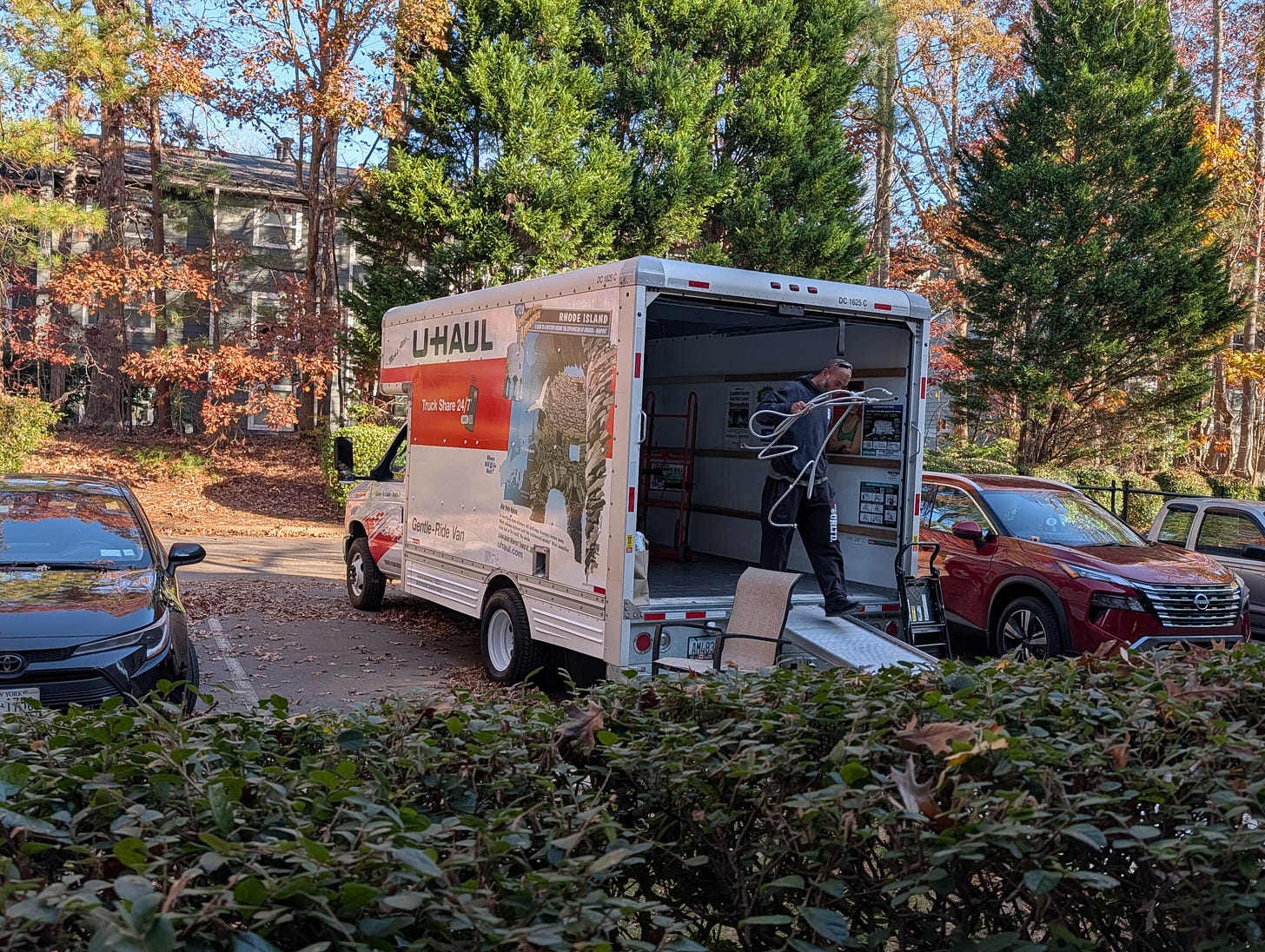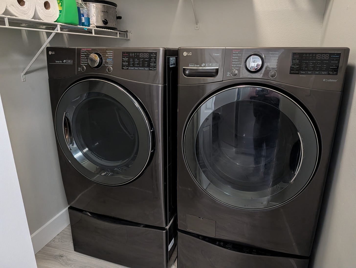 Our apartment had a washer and dryer included. The washer was an older standard top load machine. It had a faulty bearing and the machine had to be replaced. Even with the shiny new machine, we missed our beautiful front load washer and the matching dryer. Thanks to good friends, our washer and dryer and several other items we left in our South Carolina home were delivered to us this morning. Big shout out to Brian and Mike.