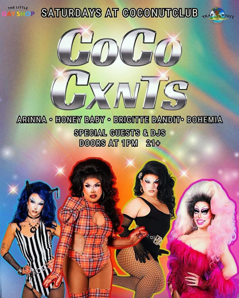 Last, but certainly not least, you could go to the Coconut Club is Austin, Texas for the Drag Brunch tomorrow. The doors open at one and the shows starts at two. Who gives a damn about the weather, it will be plenty hot inside the club.